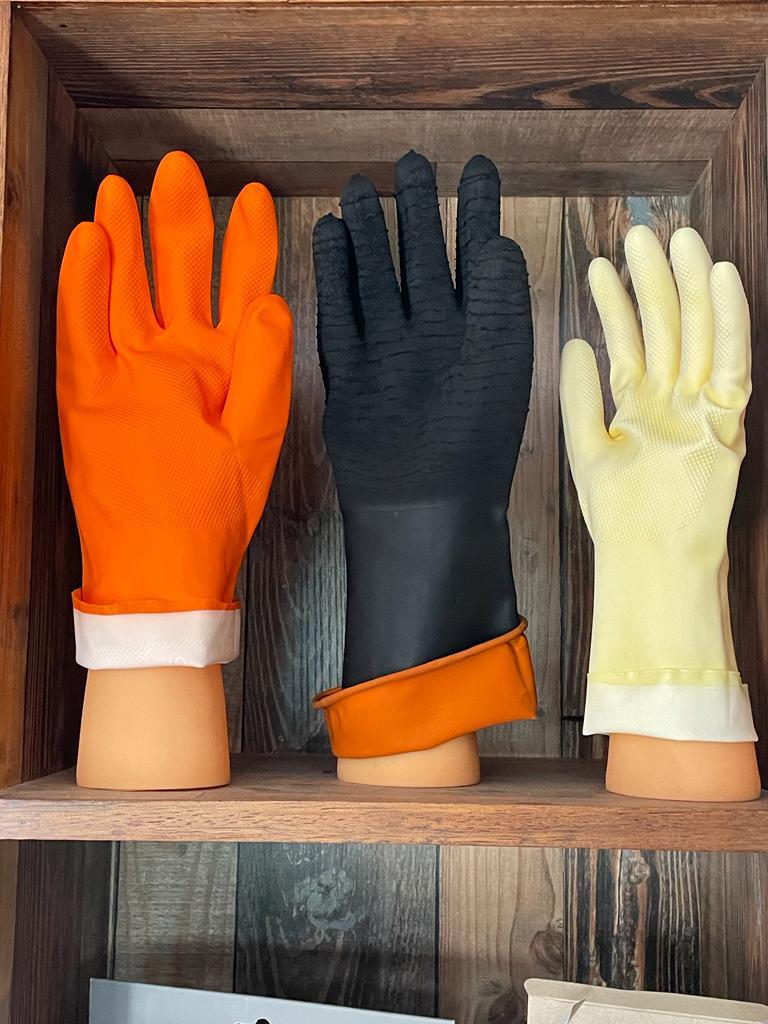 Versatile rubber gloves providing excellent grip and protection from chemicals, dirt, and contaminants, ideal for cleaning and industrial use.