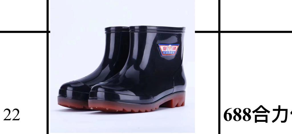 Waterproof and slip-resistant rubber boots designed for comfort and protection in wet, slippery conditions, ideal for outdoor work in rainy environments.