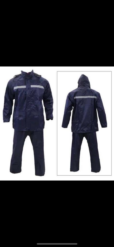 A durable, weather-resistant raincoat set designed for comfort and protection during heavy rain, featuring a split design for flexibility.