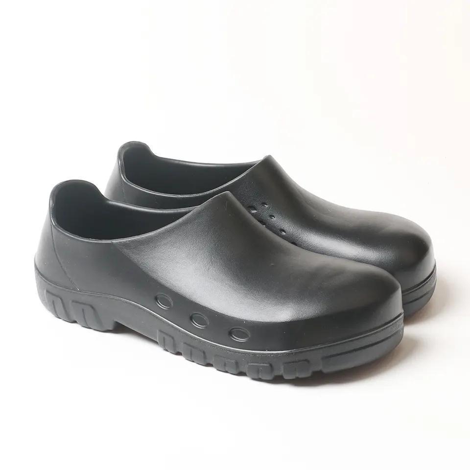 Slip-resistant safety shoes designed for kitchen environments, offering comfort and protection against slips, spills, and sharp objects.