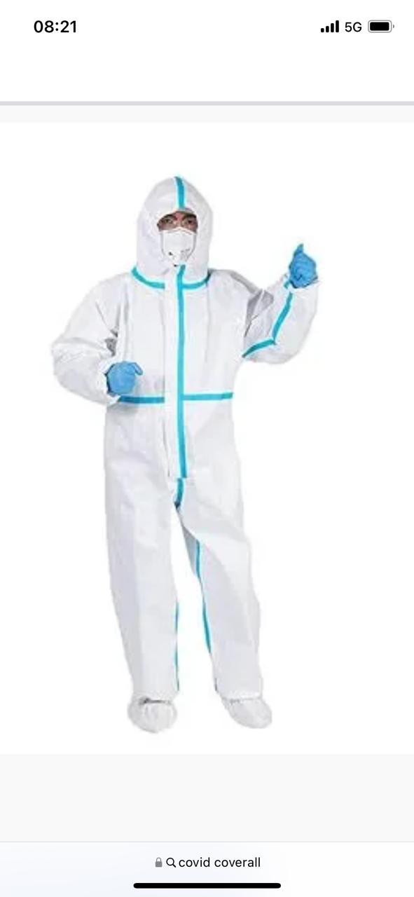 Full-body protective coverall designed for hygiene and safety in hazardous environments, offering complete coverage to protect against contaminants.